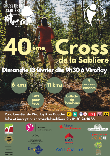 Dimanche 13 février 2022 dès 9h30, Viroflay accueille la 40e édition du Cross de la Sablière. Le rendez-vous est donné dans le Parc Forestier. 6 courses sur la matinée à partir de 6 ans (4 enfants de 1000 à 2800 m; et 2 adultes : 6300 et 10800 m), entièrement en forêt et chemins sécurisés. Le club omnisports est partenaire des associations locales « Les dunes d’espoir », qui fournira notamment des coureurs portant des jeunes handicapés sur des joëlettes sur les deux cross adultes, et « Les bouchons de l’espoir », qui se chargera de collecter tous les bouchons en plastique apportés ou ramassés ce jour-là afin de les recycler, puis de financer des projets locaux de sport adapté / handisport.