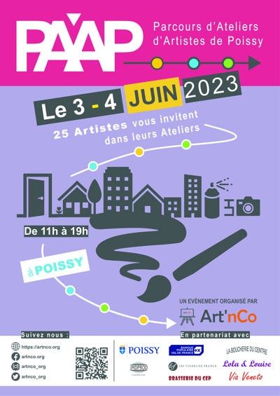 Le week-end des 3 et 4 juin 2023, 25 Artistes vous accueillent tout au long d’un parcours dans Poissy comprenant 16 ateliers et lieux d’exposition. Vous pourrez découvrir leurs créations dans leurs ateliers mais aussi dans des jardins répartis dans toute la ville. Cet évènement sera une opportunité d’échanger avec les artistes sur leur pratique (peinture, dessin, sculpture, photographie, art urbain, bijoux…) et, si vous le souhaitez, acquérir des oeuvres originales.