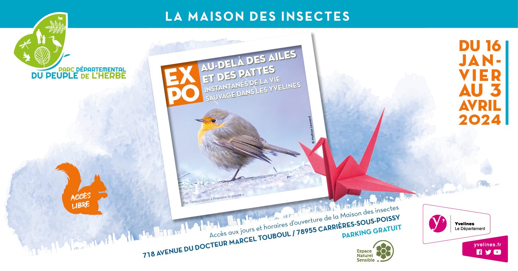 Le Parc départemental du Peuple de l’Herbe vous invite à venir découvrir l’exposition Au-delà des ailes et des pattes : instantanés de la vie sauvage dans les Yvelines. Cette exposition, à découvrir à la Maison des Insectes, vous est proposée par l’association photographique « Prenons la pause », dédiée à la préservation de la nature. Venez plonger au cœur de la faune locale au cours d’un voyage au plus près de la vie animale qui nous entoure.