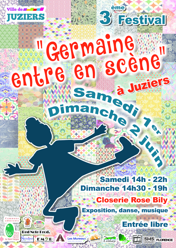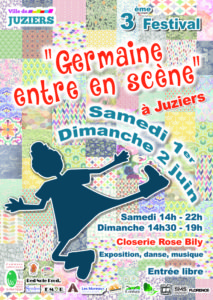 • Les 1er et 2 juin 2019, le Festival « Germaine entre en scène » revient pour la troisième année consécutive dans la closerie Rose Bily à Juziers. Entre musique, expositions, danse, théâtre… Petits et grands seront ravis de ces deux jours de fête dans une ambiance chaleureuse et conviviale.