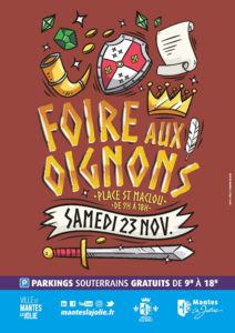 • C’est dans une ambiance médiévale, rappelant son passé prestigieux, que Mantes-la-Jolie accueille son ancestrale Foire aux oignons. Samedi 23 novembre, retrouvez l’événement préparé dans la plus pure tradition. Un véritable voyage dans le temps. Frappez la monnaie et repartez avec votre pièce, percez les secrets des fabricants de chandelles médiévales, fabriquez un bijou et emportez-le : un grand nombre d’activités pour les jeunes ou moins jeunes !
