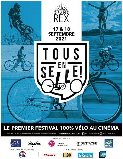 Cette année encore, le Département des Yvelines est sponsor officiel de l’événement Tous en Selle, festival de cinéma dédié au vélo. L’événement se déroulera les 17 et 18 septembre au Grand Rex. Le Département y aura un stand aux couleurs « Les Yvelines, Terre de Vélo ». Venez assister à une soirée hors norme, que vous soyez passionnés de Vélo ou fan de cinéma, ou encore amateurs de spectacle le temps d’une soirée.