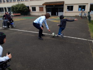 Le rugby partage les valeurs de l’IEM : l’entraide, la solidarité, l’initiative. D’une manière ludique, ils peuvent apprendre les valeurs de ce sport et les appliquer par la suite dans leur ouverture sur le monde extérieur. On espère même emmener les enfants voir un match du XV de France.