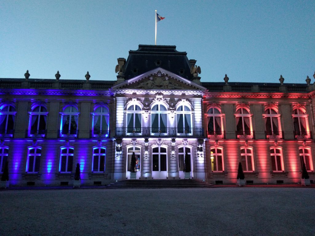 Drapeau en berne et éclairage « bleu, blanc, rouge » de la Préfecture et du Conseil départemental des Yvelines en hommage à Stéphanie Monfermé. CD78