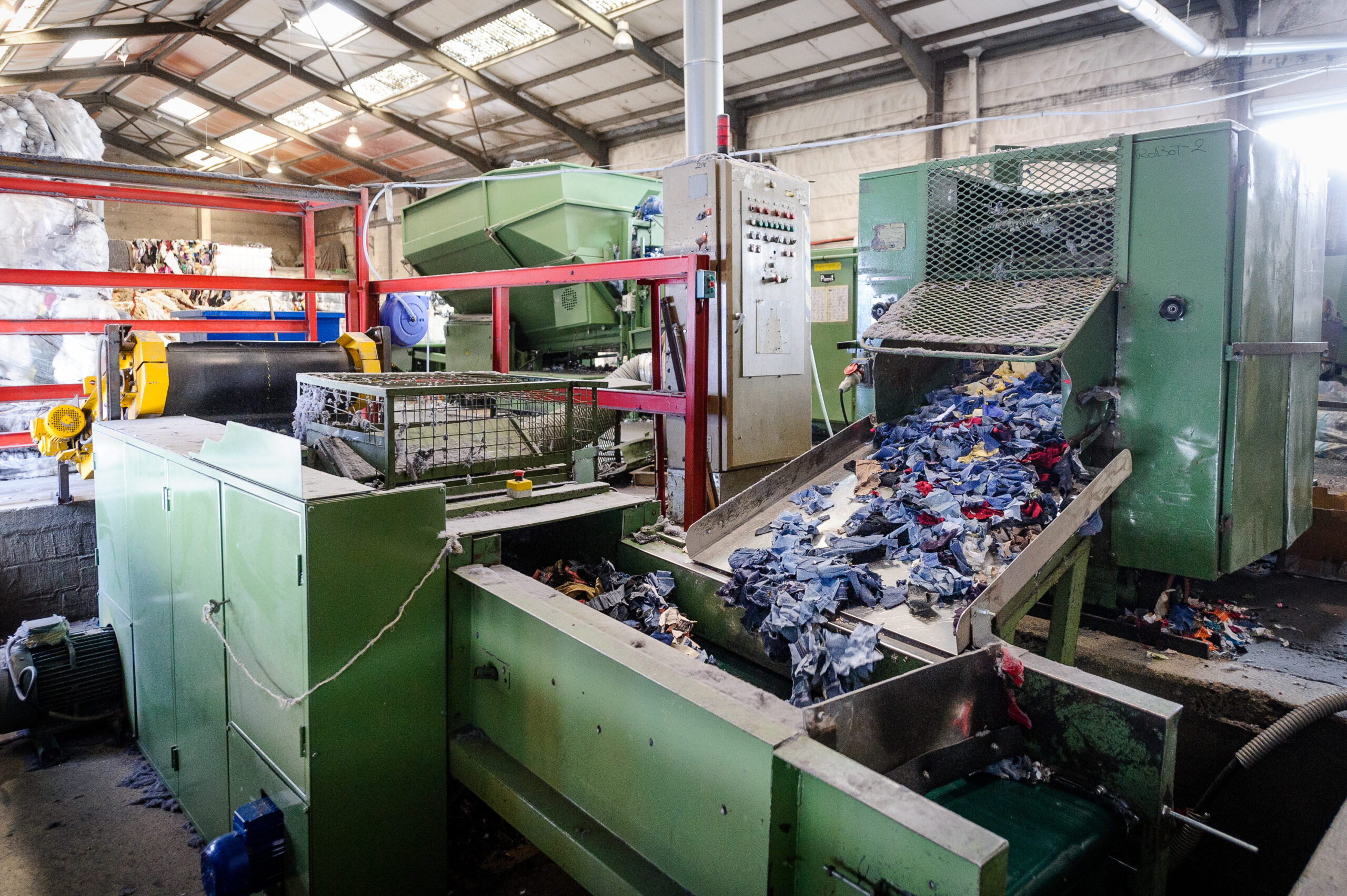 Après avoir été triés, les jeans sont déchiquetés afin d’être transformés en matériau d’isolation (Photo Arnaud Bouissou – Terra)