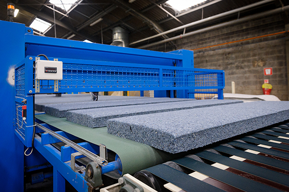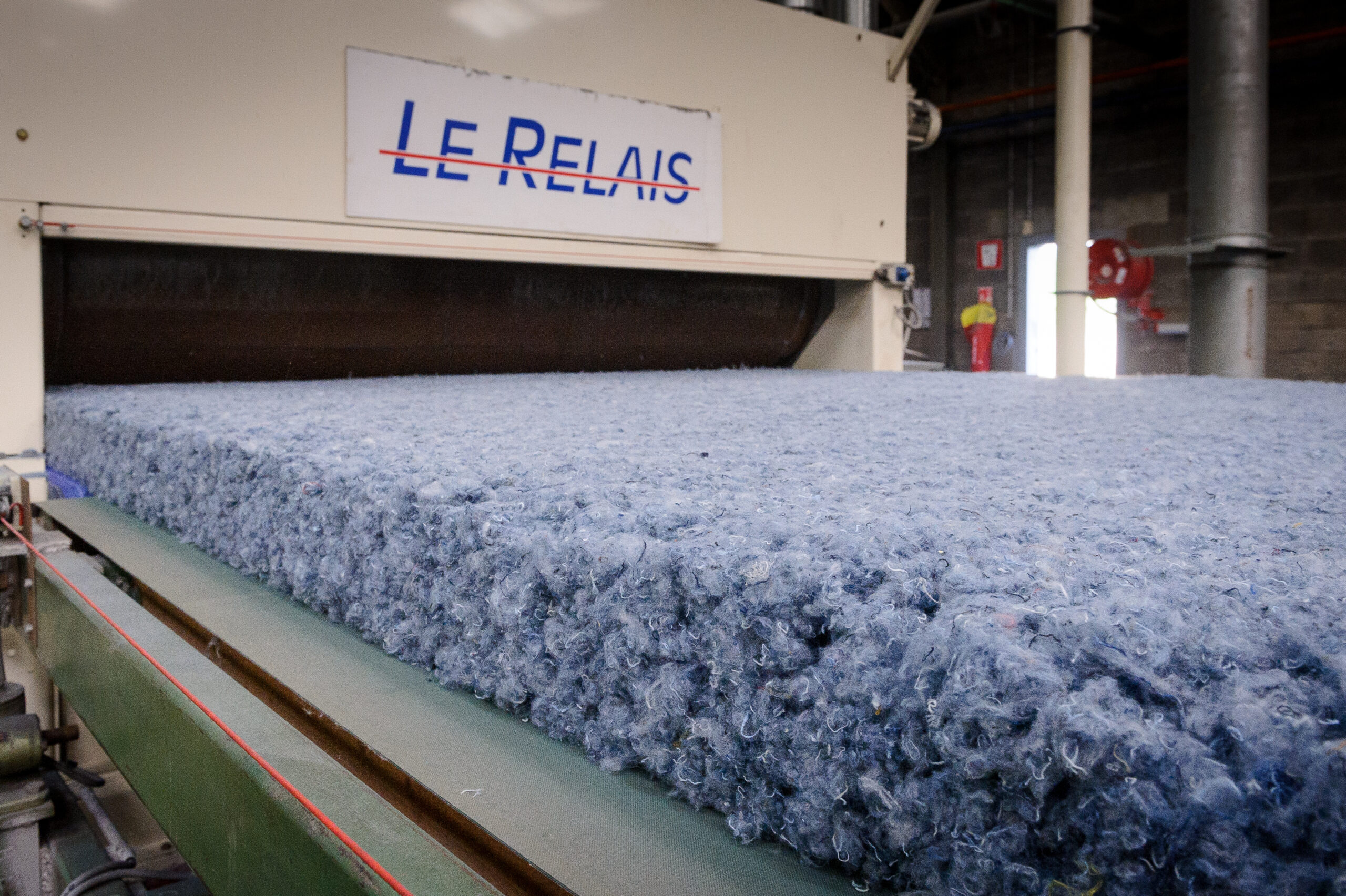 Les pantalons sont effilochés et déchiquetés en petits morceaux, explique le Relais. Après cette étape, la matière fibreuse subit un traitement spécifique anti feu pour la rendre ininflammable. Elle est enfin compactée afin de réaliser des panneaux d’isolation.