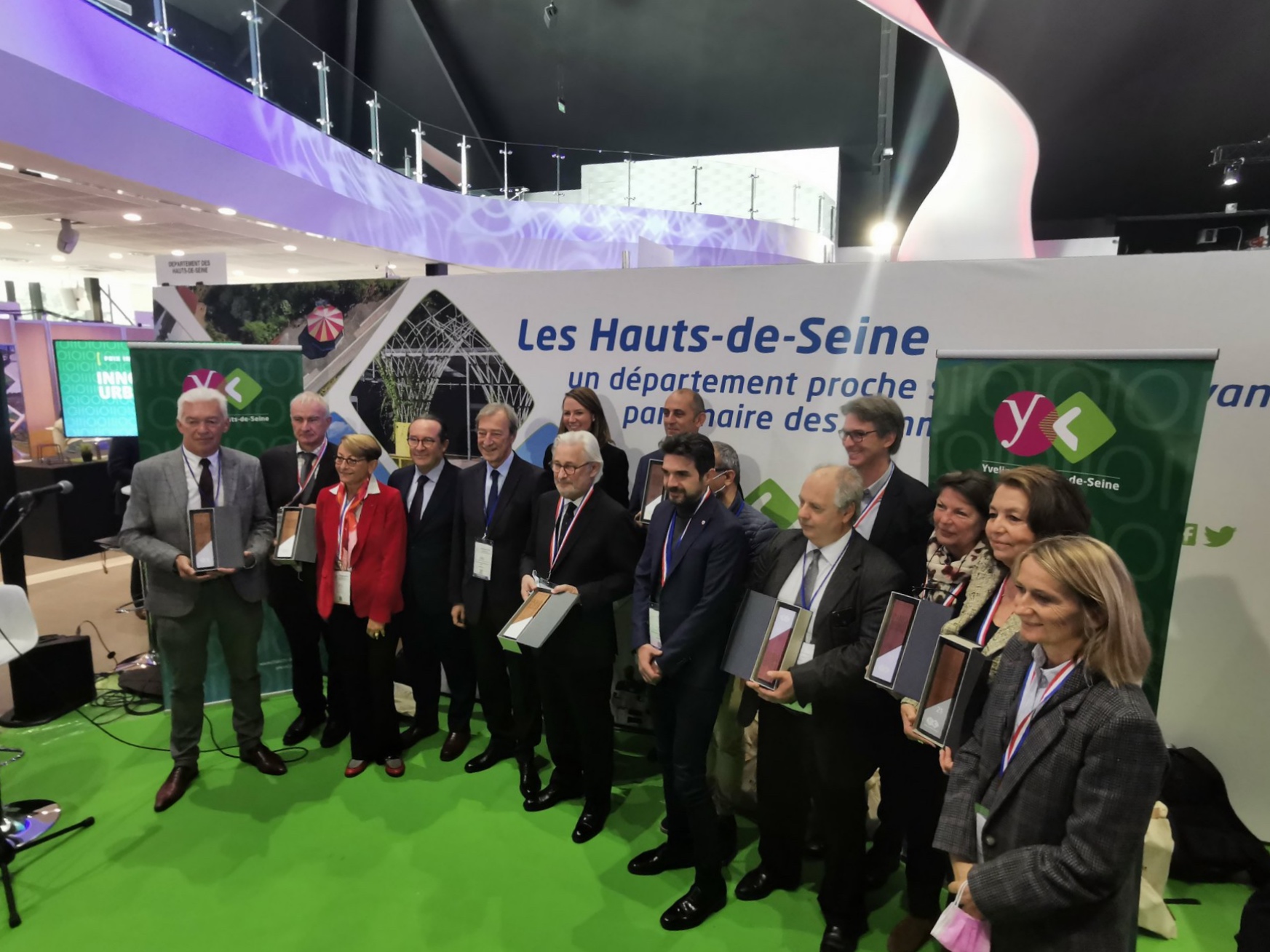 Georges Siffredi, président du Département des Hauts-de-Seine, et Pierre Bédier, président du Département des Yvelines, ont remis les trophées de l’édition 2021 du Prix interdépartemental de l’innovation urbaine aux Maires et représentants des communes alto-séquanaises et yvelinoises lauréates. © CD78