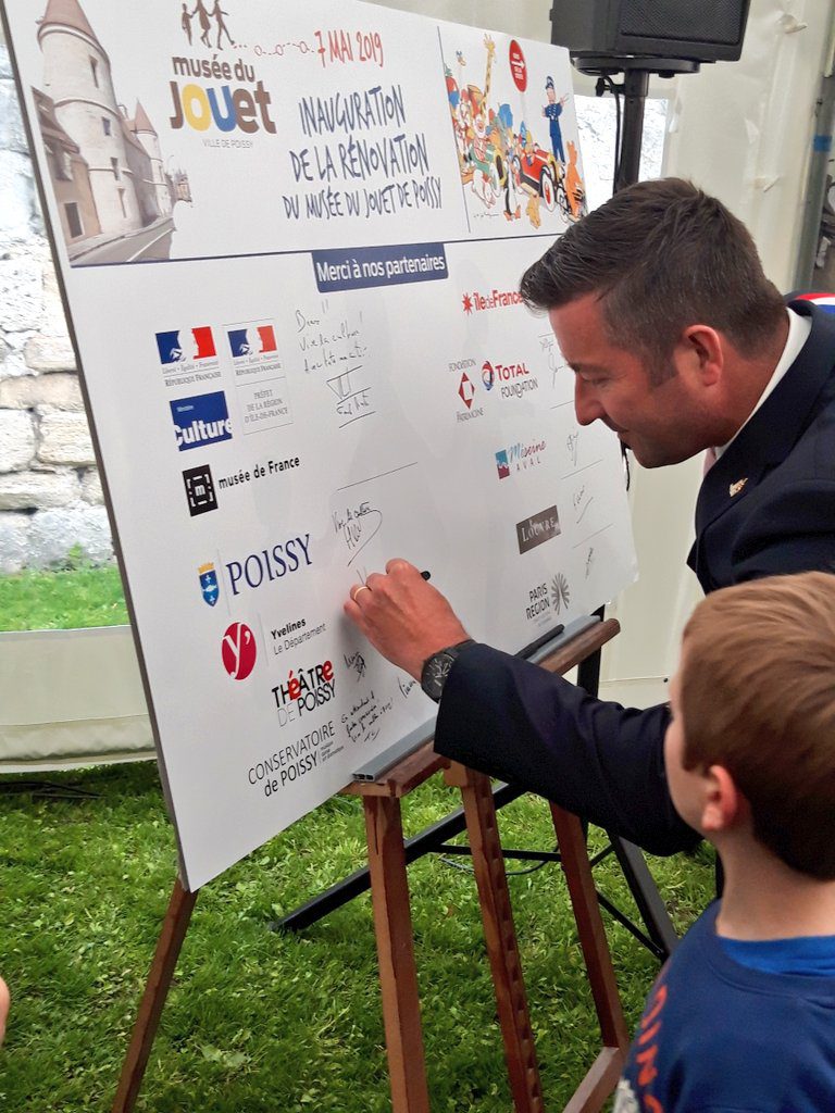 Karl Olive signant le panneau inaugural en tant que Conseiller départemental des Yvelines lors de la réouverture du Musée du Jouet © CD78 / MC.Rigato