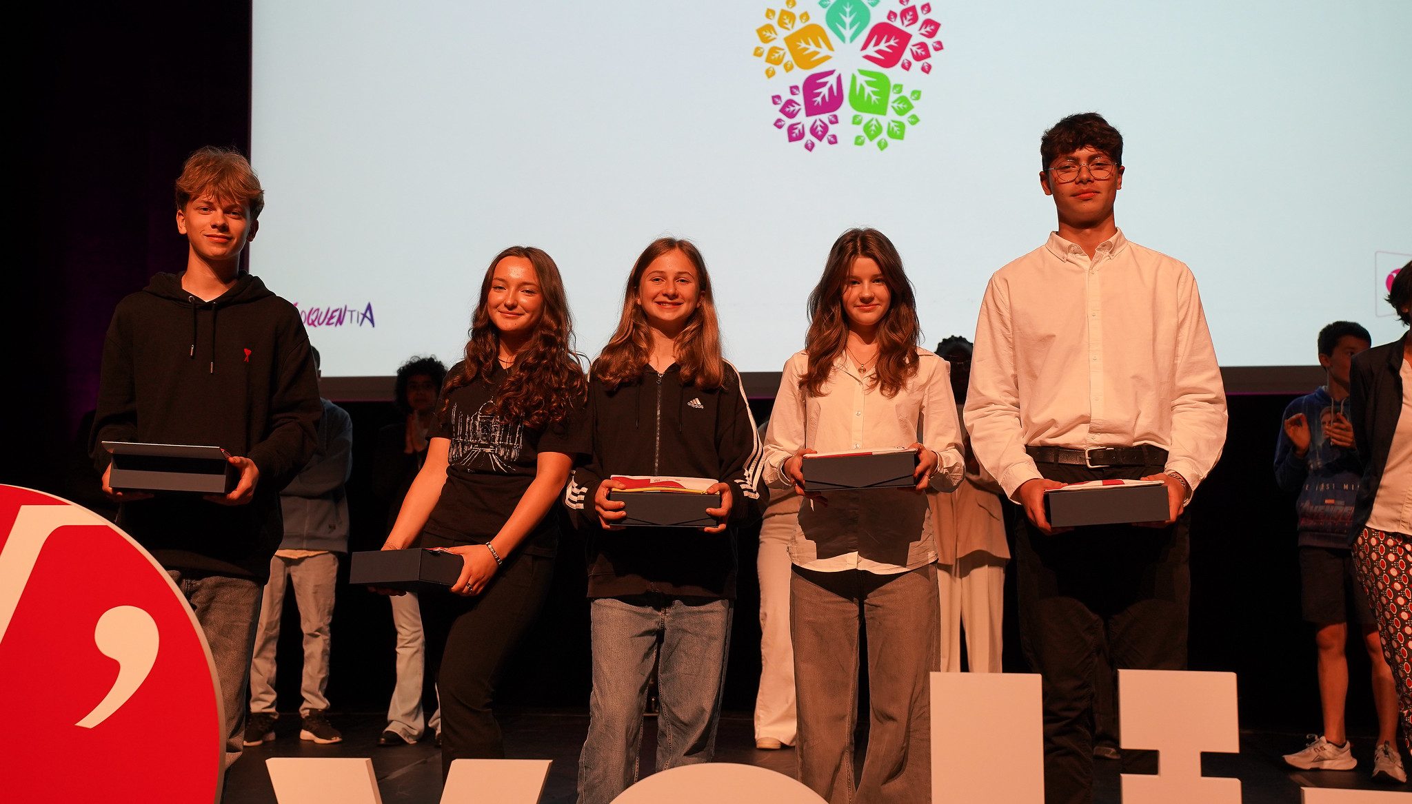 Depuis plusieurs mois, 13 classes de 3ᵉ issues de 13 collèges répartis sur l’ensemble du territoire se sont préparées à cet exercice. Accompagnés par les professionnels de l’association Eloquentia, les élèves ont appris à structurer leur discours, à travailler leur posture et à gérer leurs émotions. Dès l’ouverture, la salle du Théâtre Coluche a été portée par l’enthousiasme de Sofia et Mélina, deux membres d’Eloquentia chargées d’animer la matinée. Dynamiques et complices avec le public, elles n’ont pas hésité à mettre l’ambiance dans la salle pour encourager les collégiens.