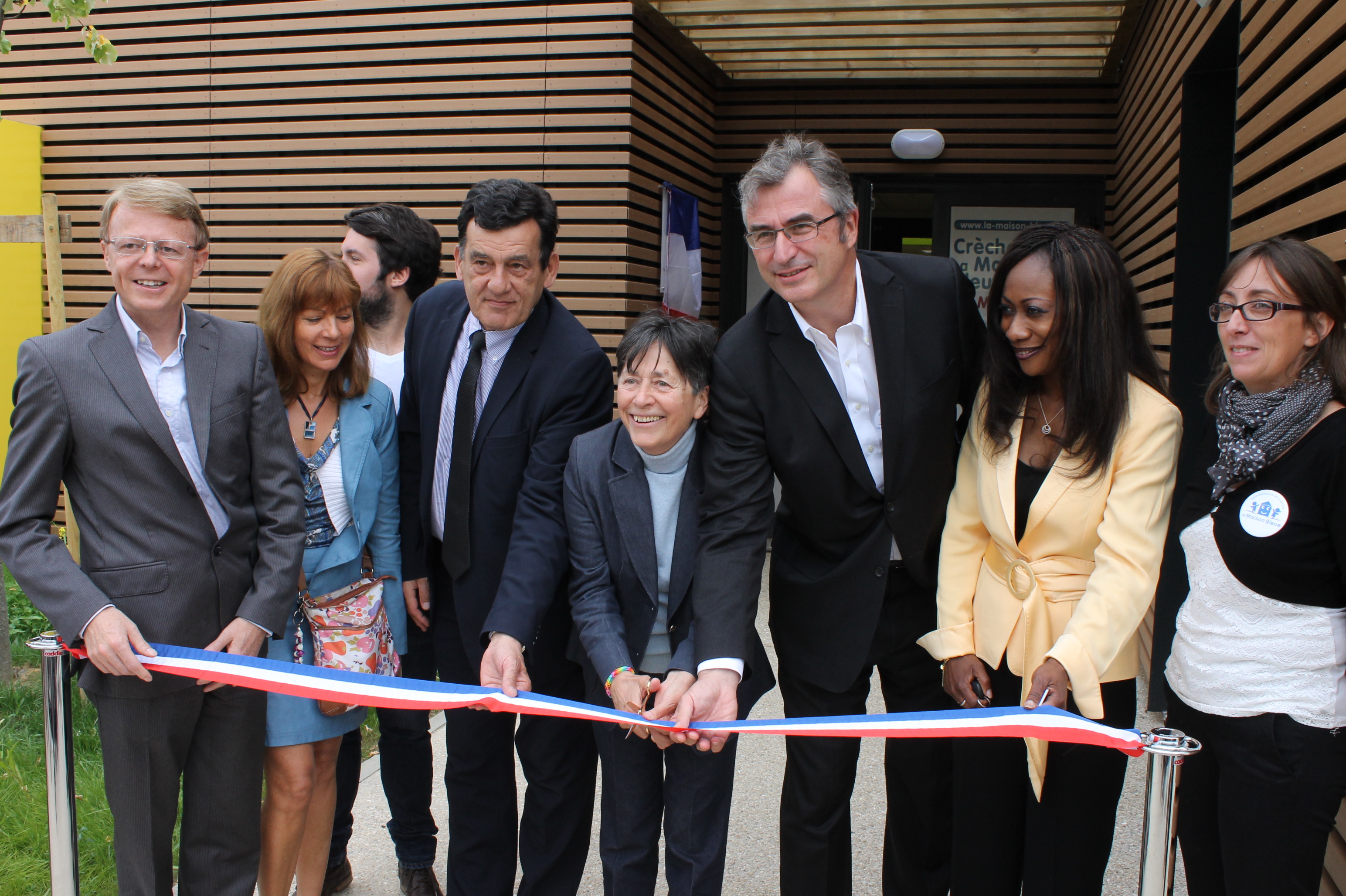 Bernard Debain, le maire de Saint-Cyr-l’Ecole, la sénatrice Marie-Annick Duchêne, le Vice-président du Conseil général Ghislain Fournier et le Président de La Maison Bleue, Sylvain Forestier, ont inauguré la nouvelle crèche mardi 1er juillet.