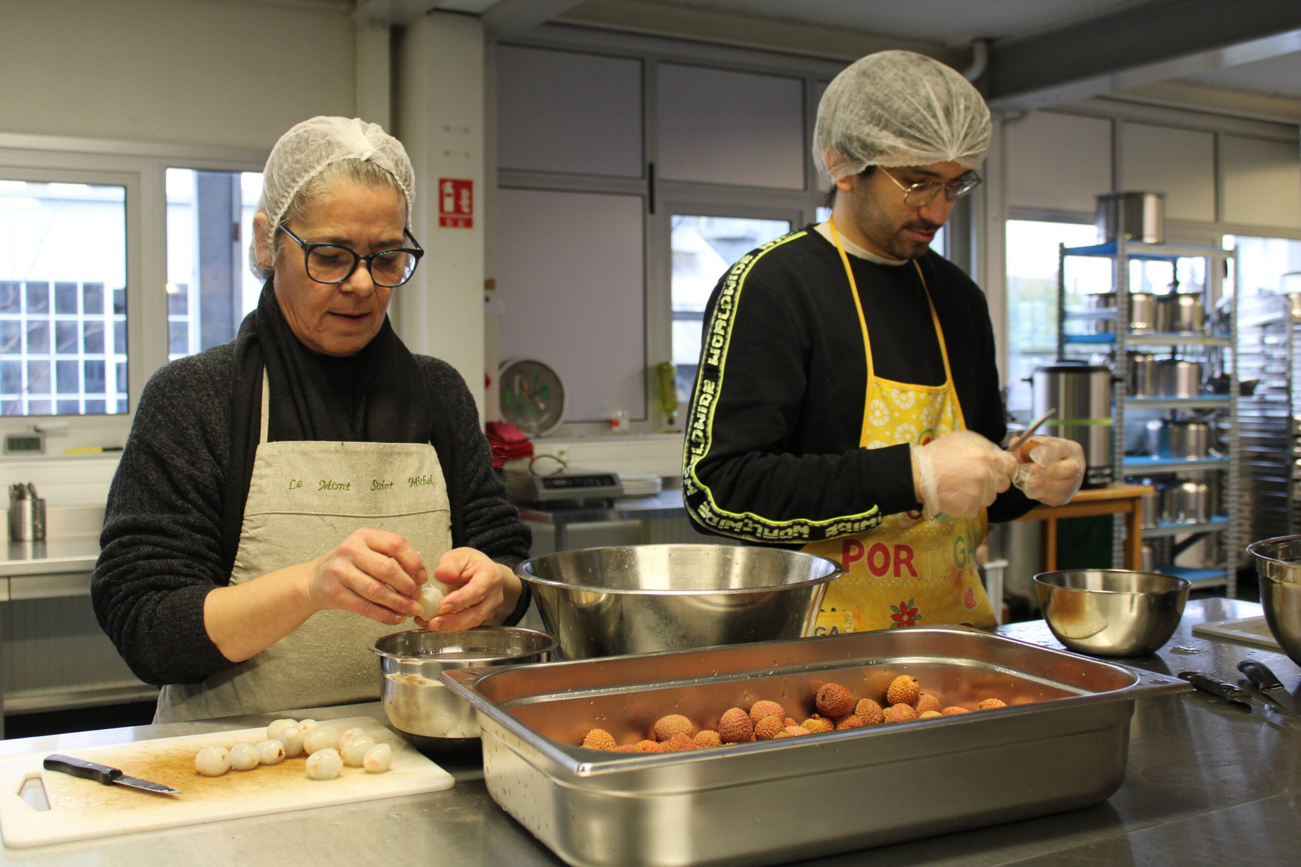 Lors de notre visite le 9 janvier dernier, les équipes de Bon et Rebond avaient pour mission de la matinée d’éplucher plusieurs kilos de litchis. ©CD78