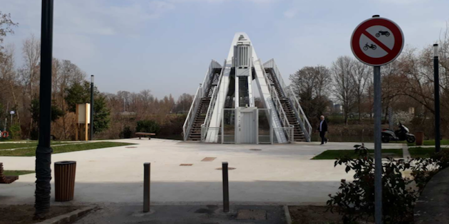 La voie piétonne et la voie cyclables sont elles aussi séparées pour assurer plus de sécurité. ©CD78/DirMob