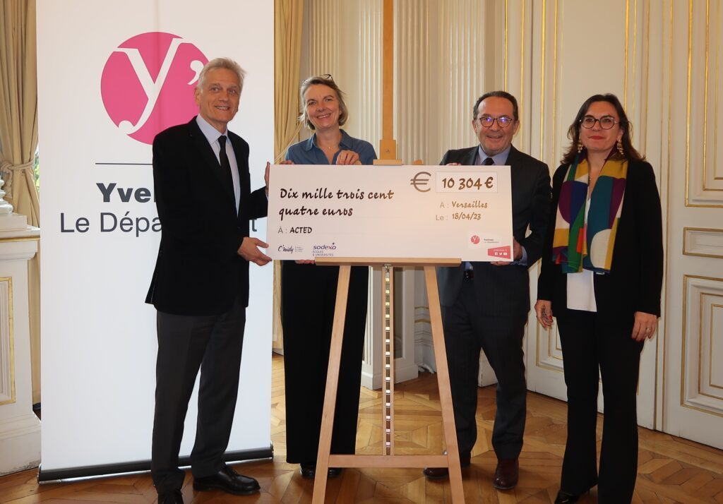 Remise du chèque à Frédéric de Saint-Sernin de l’association Acted (à gauche). CD78/Y.Fossey