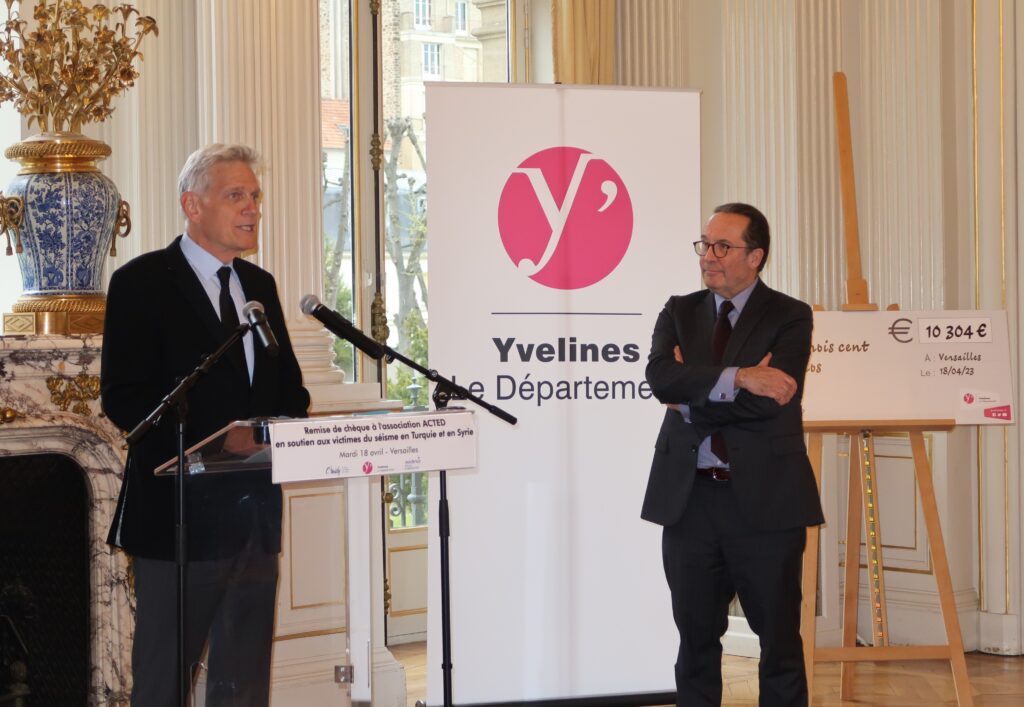 Le chèque de 10 304 € au profit des victimes du tremblement de terre de Turquie et de Syrie a été remis le mardi 18 avril à Frédéric de Saint-Sernin, le directeur général délégué de l’organisme Acted. L’événement s’est déroulé à l’Hôtel du Département en présence, entre autres, de Pierre Bédier, le président du conseil départemental, d’Alexia de Bengy, directrice générale de C’Midy et Sophie Neron-Berger directrice générale de Sodexo.