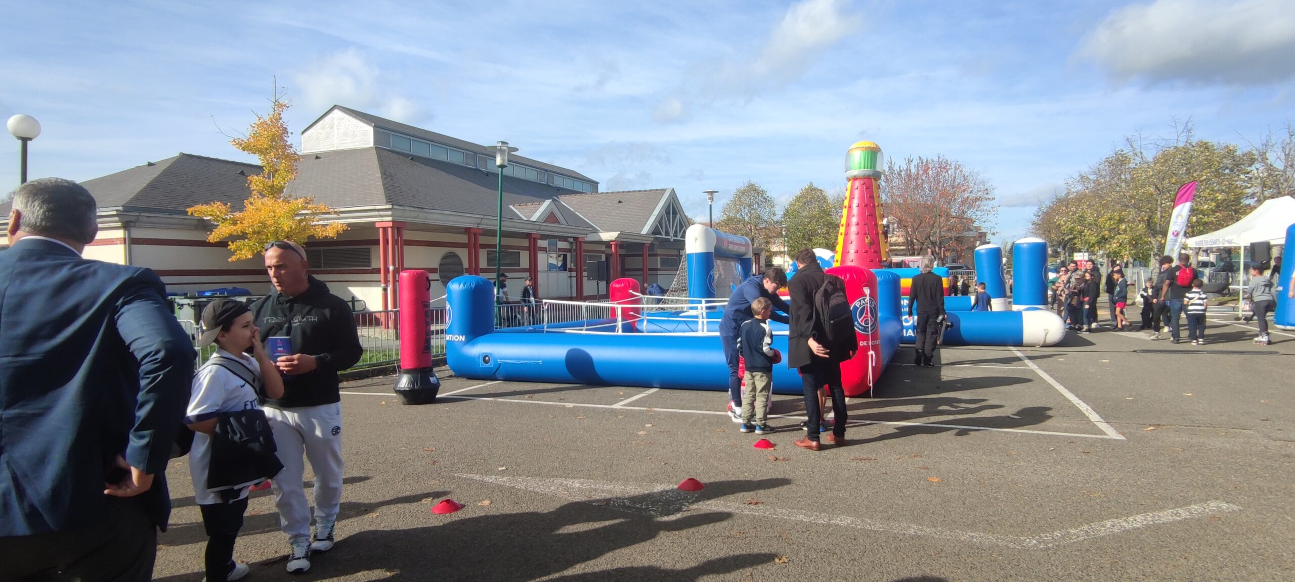 Sur la place du marché des Essarts-le-Roi, ils sont plus d’une centaine de jeunes à se masser autour du parking. Les nombreuses animations assurent le show. Entre les trophées remportés par le PSG, le stand de pénalty ou la tour d’escalade, les enfants peuvent ainsi s’amuser et profiter pleinement de leurs vacances. C’est d’ailleurs là qu’est l’intérêt. Ces journées se tiennent durant les vacances scolaires pour permettre d’offrir une activité à ceux qui ne partent pas.