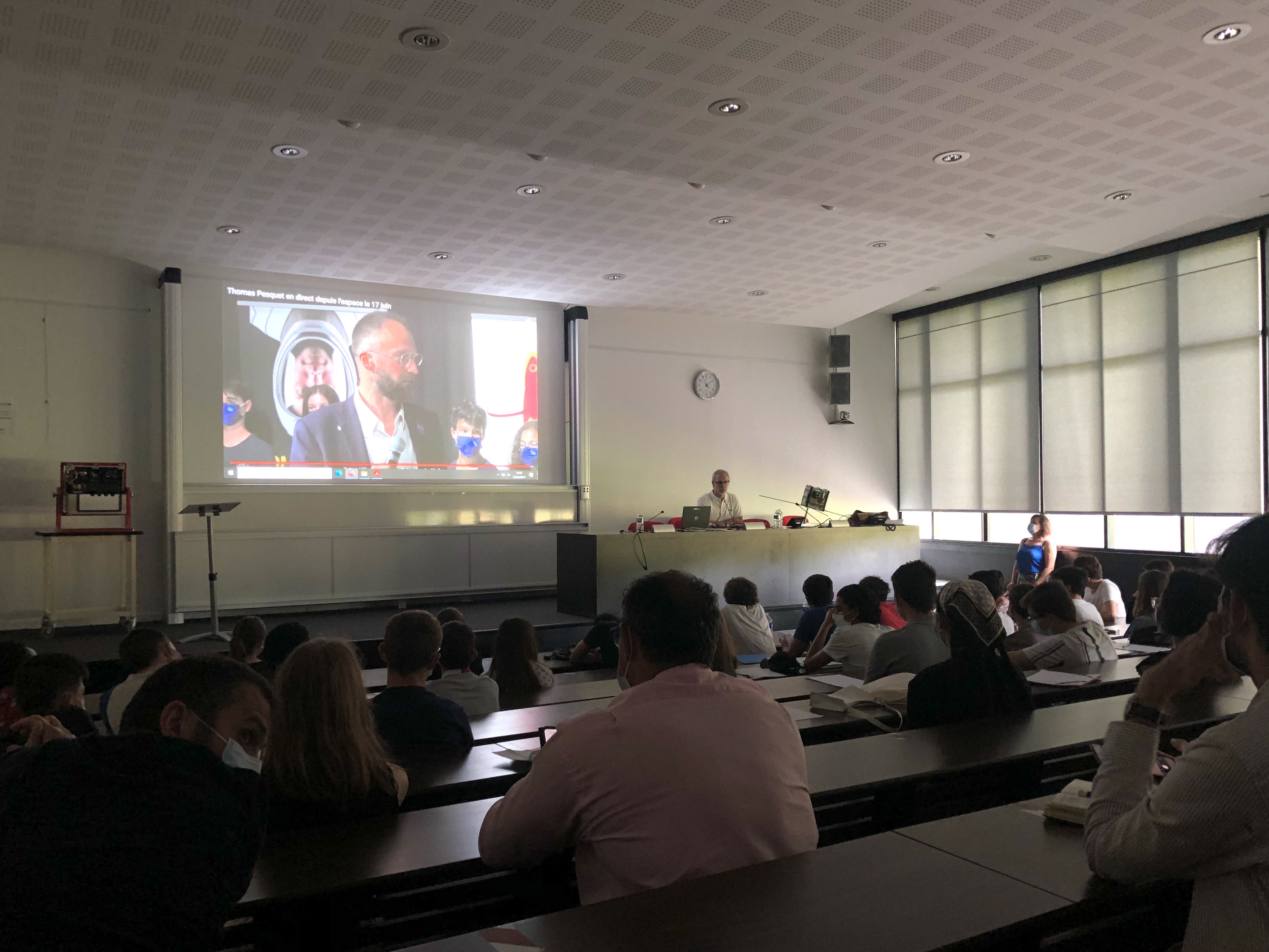 C’était un évènement ! À peine rentré de sa sortie en dehors de l’ISS, l’astronaute Thomas Pesquet a pris le temps d’échanger avec des élèves franciliens depuis l’espace. Les élèves du lycée Saint François d’Assise à Montigny-le-Bretonneux ont suivi la retransmission en direct depuis l’UVSQ, fascinés d’être en contact si rapproché avec une personne dans l’espace.