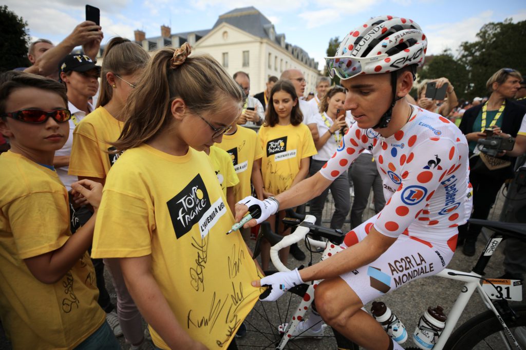 Le Tour de France est l’occasion de rencontres entre les supporters et les coureurs. Comme ici à Rambouillet. © CD78/N.DUPREY