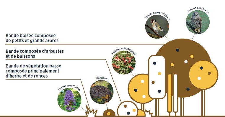Appelée aussi lisière étagée, elle se compose en trois parties. La première est une bande de végétation basse qui comprend avant tout de l’herbe et des ronces. Elle vient créer un premier rempart protégeant la seconde couche réalisée avec des arbustes et des buissons. Une protection supplémentaire à la troisième couche qui elle reprend les caractéristiques de l’ancienne lisière, c’est-à-dire des petits et des grands arbres.