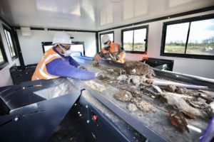 Pour le reste des déchets, c’est une unité de tri mobile qui se charge du traitement. Cette gigantesque machine organise et optimise le tri des matériaux trouvés sur place, qui seront ensuite valorisés. « L’objectif est de faire de ces déchets, une nouvelle matière première », précise Franck Paupardin.