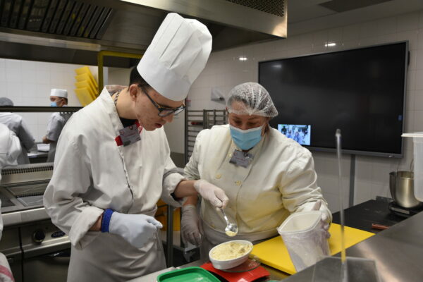 déclare Tony, très concentré sur la création de la bûche Honoré. Quant à Loïc, son gâteau au chocolat et fruits était prometteur. « J’aime cuisiner, c’est bien d’être là », souriait le jeune homme.
