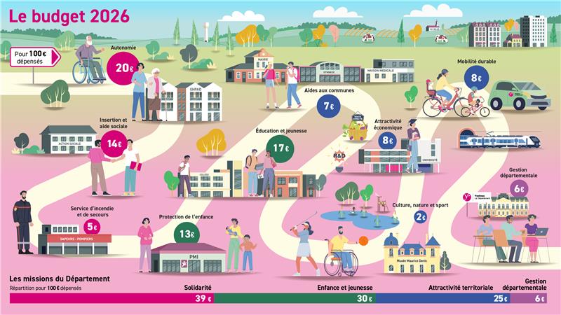 Le budget 2026 traduit un juste équilibre entre solidarité et attractivité. Le Département maintient premièrement son engagement en faveur des politiques sociales, notamment pour l’accompagnement des personnes âgées, des personnes en situation de handicap et de la protection de l’enfance.