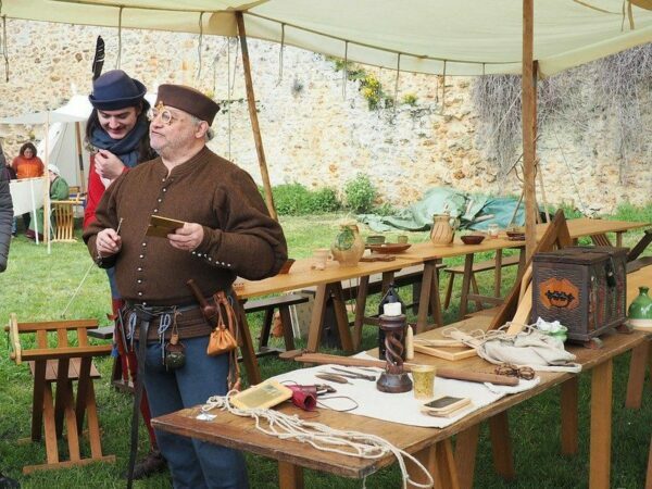 Le château de la Madeleine a déjà accueilli deux rendez-vous exceptionnels autour de reconstitutions historiques : les métiers de l’artisanat au Moyen Age (22 et 23 avril), présentés de manière vivante, costumée par les bénévoles de l’association Les Regrattiers d’Histoire. Un week-end passionnant qui a permis aux nombreux visiteurs de découvrir l’art de la broderie, de la frappe des pièces, de la calligraphie, de la teinture, l’art des bâtisseurs… avec des ateliers gratuits pour tous.