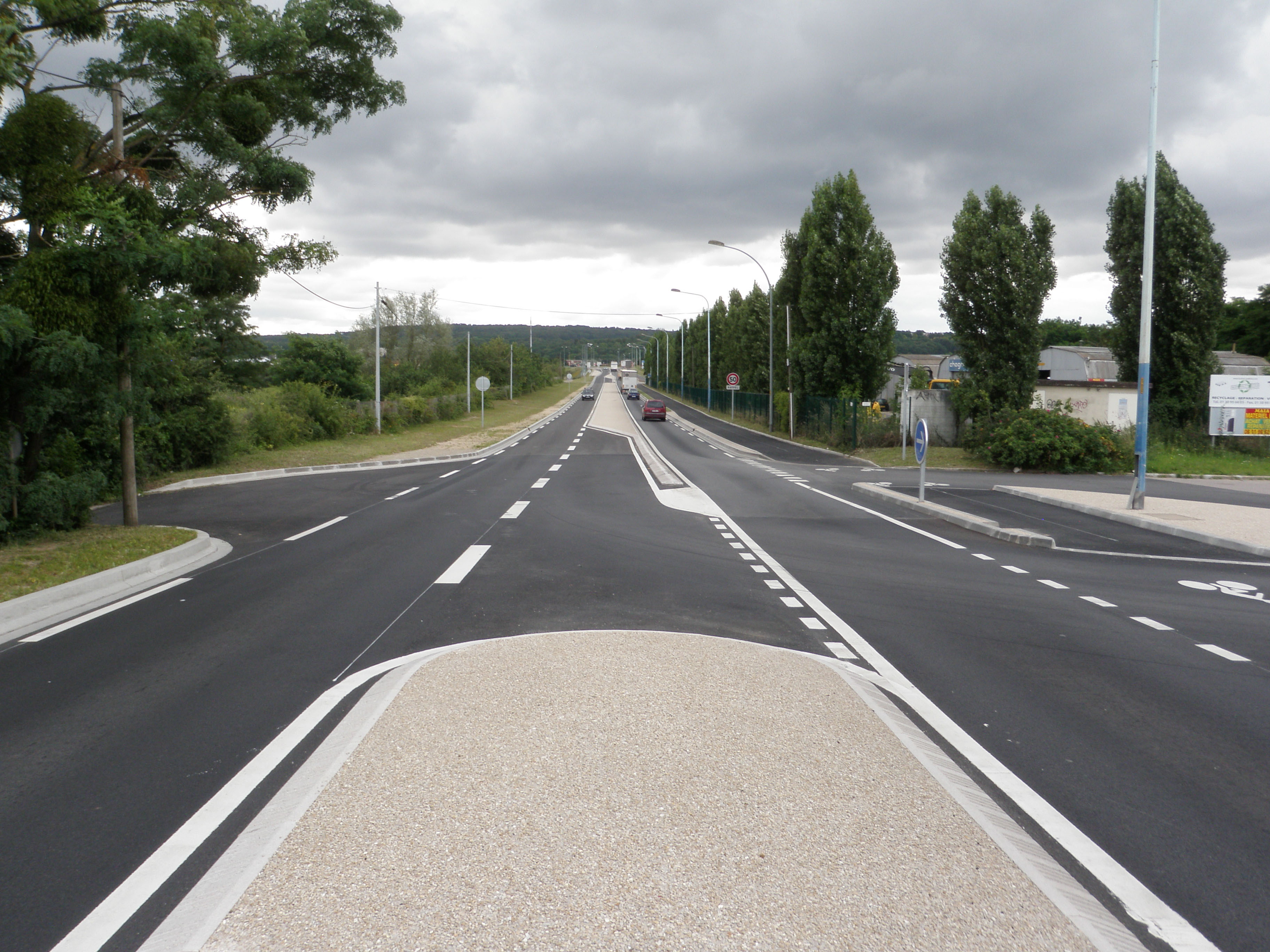 Les aménagements ont permis de renforcer la chaussée (de façon à mieux supporter un fort trafic de poids-lourds) et de sécuriser la circulation avec, notamment, la création d’une piste cyclable où piétons et deux-roues bénéficient d’une zone sécurisée entre la commune de Flins et la zone commerciale.