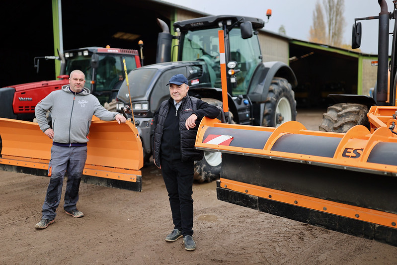 Claude Poussignot et son fils Nicolas font partie des agriculteurs volontaires. Ils ont 3 tracteurs équipés de lames, prêts à intervenir dès que l’EPI leur donnera le feu vert. Photo Nicolas Duprey/CD78