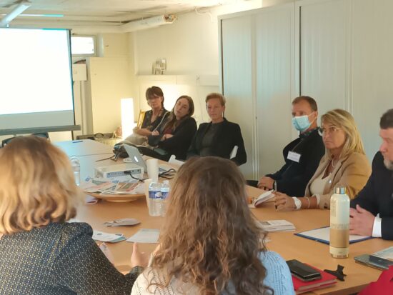 Véronique Riotton, présidente de la Délégation aux droits des femmes de l’Assemblée nationale rencontre l’équipe de la Maison Calypso le 27 septembre 2022. Photo S.Gayet/CD78