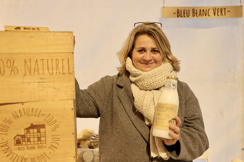 Alors que le monde entier était à l’arrêt, Véronique a commencé par préparer sa propre lessive. Un peu de savon de marseille, des cristaux de soude,… Rien n’est secret puisque la liste des ingrédients est inscrite sur les étiques (éco-responsables) sur les produits. Pour l’anecdote, la lessive de Bleu Blanc Vert est aujourd’hui le best-seller de la marque !