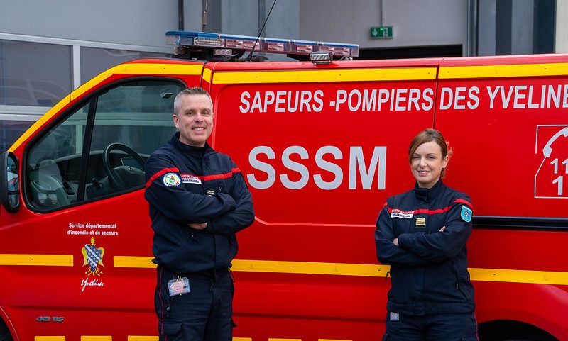 Le lieutenant-colonel Vivien Veyrat et la commandante Emilie Baissières, pharmaciens sapeurs-pompiers au SDIS78 ©CD78/S.Furrer