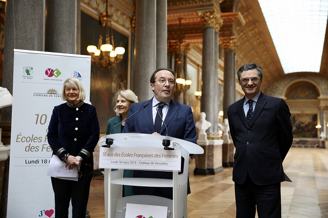 Bénédicte de Kerprigent, Catherine Pégard, Pierre Bédier et Patrick Devedjian lors des 10 ans de l’Ecole des Femmes © CD78 / N.Duprey