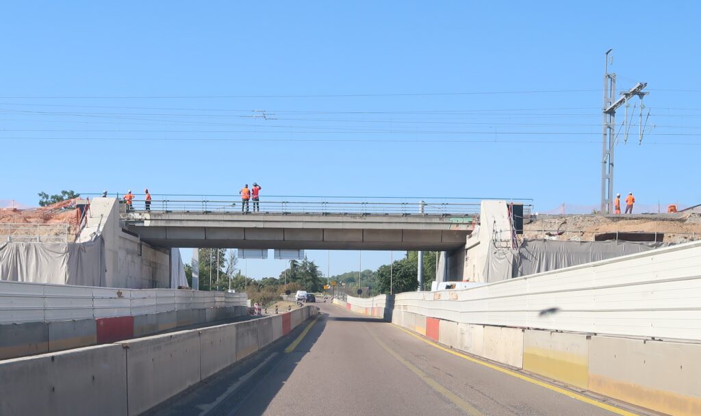Il est prévu d’installer un pont-rail supplémentaire à côté de l’actuel ouvrage qui enjambe la D 983. Le nouvel équipement, qui a été construit au préalable sur place, va être déplacé en douceur à l’aide de charriots afin d’être mis en place.