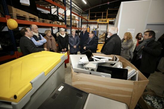 Visite en 2019 des élus du Département au chantier d’insertion recyclage informatique des Restos du Coeur aux Clayes-sous-Bois. Photo Nicolas Duprey/CD78