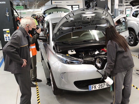 Jean-Dominique Sénard, président du Groupe Renault observe le travail sur une Zoé d’occasion. © CD78/N.Théodet