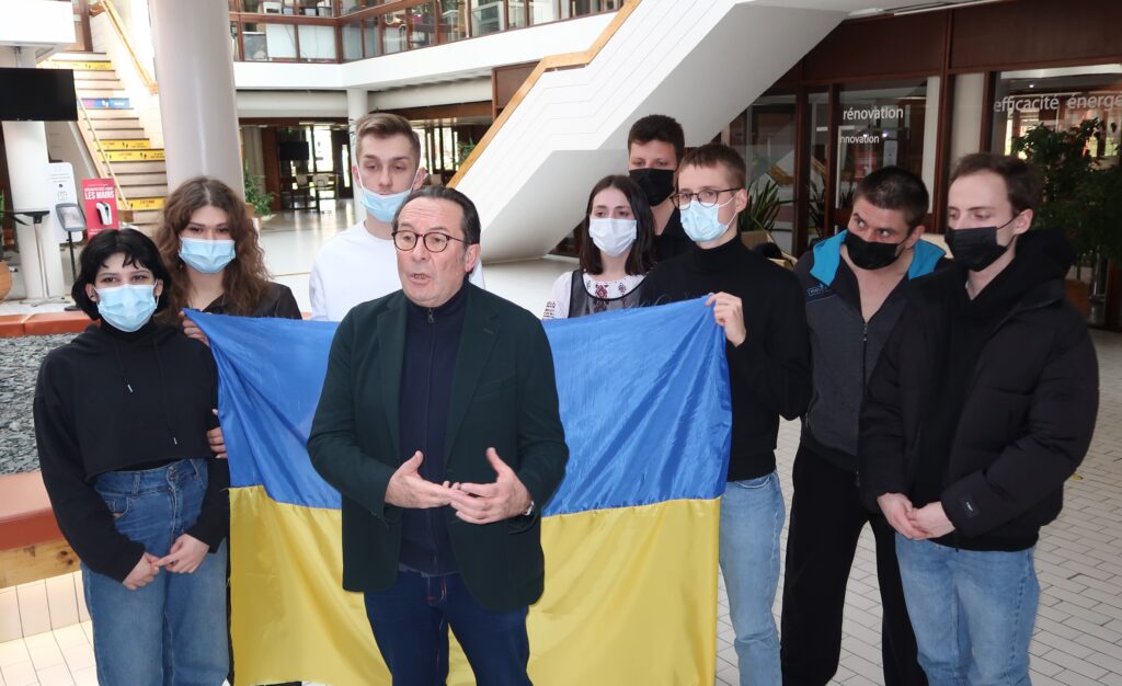 Sans attendre, Pierre Bédier, le président du Conseil départemental, s’est rendu sur place lundi 28 février 2022 afin de confirmer le soutien du Département. L’un des réfugiés avait un drapeau ukrainien sur les épaules et c’est en anglais que l’échange s’est déroulé.
