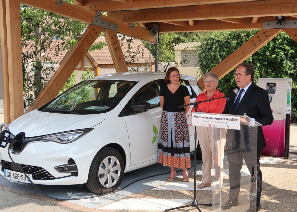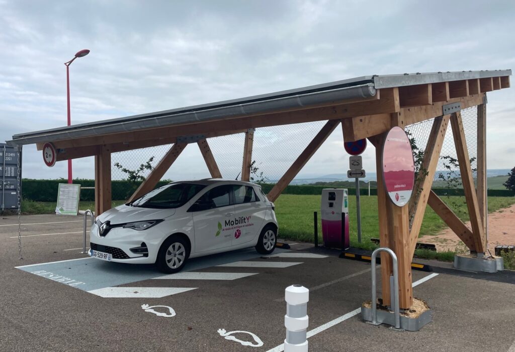 Ce système de mobilité solidaire, baptisé MobilitY, comprend des bornes de recharge et un véhicule électrique mis à disposition des communes rurales et des bénéficiaires du RSA. Les stations, installées à proximité des mairies, sont aménagées sous une ombrière écoresponsable en bois, pourvue de panneaux photovoltaïques.